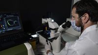 MicroscopyTo better understand the immune response, Florian's team visualizes proteins of choice with nanobodies. Nanobodies are either recombinantly produced in bacteria and fluorescently labelled, or expressed in living cells as a fluorescent fusion protein.