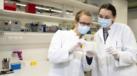 High affinityIn this example, the target of choice is immobilized on an ELISA plate and Florian's lab tests whether the serum contains specific antibodies to it. Nanobodies with high affinity are selected. Once they have these nanobodies the actual work begins ...